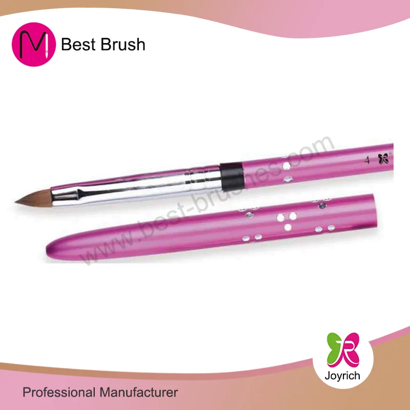 Kuas Kuku 3D Kolinsky Logam Merah Muda