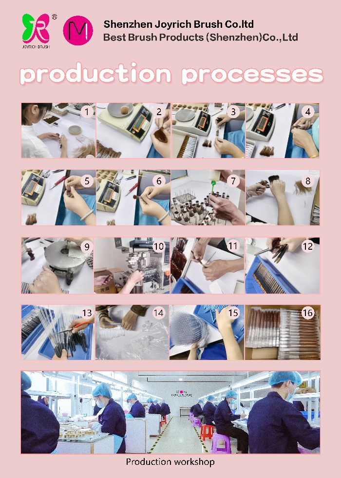 Kami beroperasi dengan fasilitas produksi khusus, peralatan canggih, dan tim pengrajin berpengalaman. Kami juga menawarkan layanan yang disesuaikan, termasuk pelabelan pribadi, ukuran kuas khusus, dan desain pegangan.